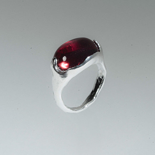 ASAHI (旭日) "the rising sun, not merely sunlight but the first light". Japan is known for being the land of the rising sun, the Asahi ring embodies the intense red colour of the japanese sunrise with this great ruby stone set in a solid 925 silver ring.