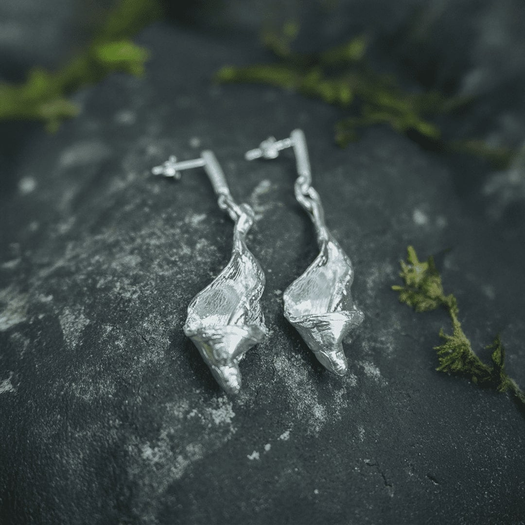 SAKURA (桜) "the cherry blossom" it is a symbol of mono no aware (物の哀れ): the tender sadness in the impermanence of things. To see sakura petals fall is to feel life’s delicate truth, that everything beautiful must pass, and that is what makes it sacred. This 925 earring studs were designed using Mitsuro, an ancient Japanese lost wax casting method for creating sculptures and jewelry with unique, organic textures that mimic natural forms like flowing wood grain.